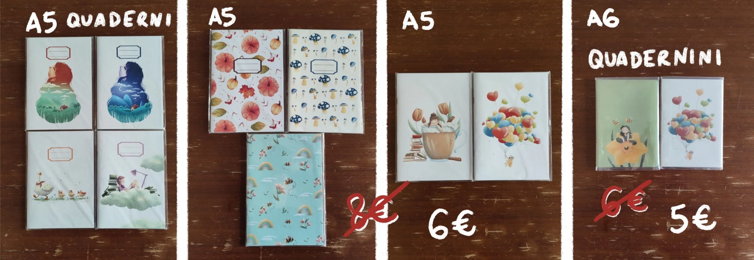 Quaderni A5 rilegati a mano, 20 pagine di carta riciclata.